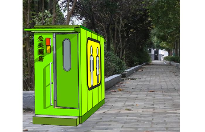 拼裝廁所;在廠里做好各個廁所部件,再到現場組裝在一齊,適合不易運輸的大型廁所。這座箱式廁所,女廁5個蹲位內配工具間,男廁2個蹲位+2小便斗,第三衛生間由殘疾馬桶、助力洗手盆和兒童馬桶、兒童洗手盆外加嬰兒臺等設施。廁所前后有窗,通風采光,前部走廊裝有屋檐,防雨防曬。此廁所位于公路綠道邊,整體大氣,功能齊全,造型美觀,是一道難得的靚麗景觀!